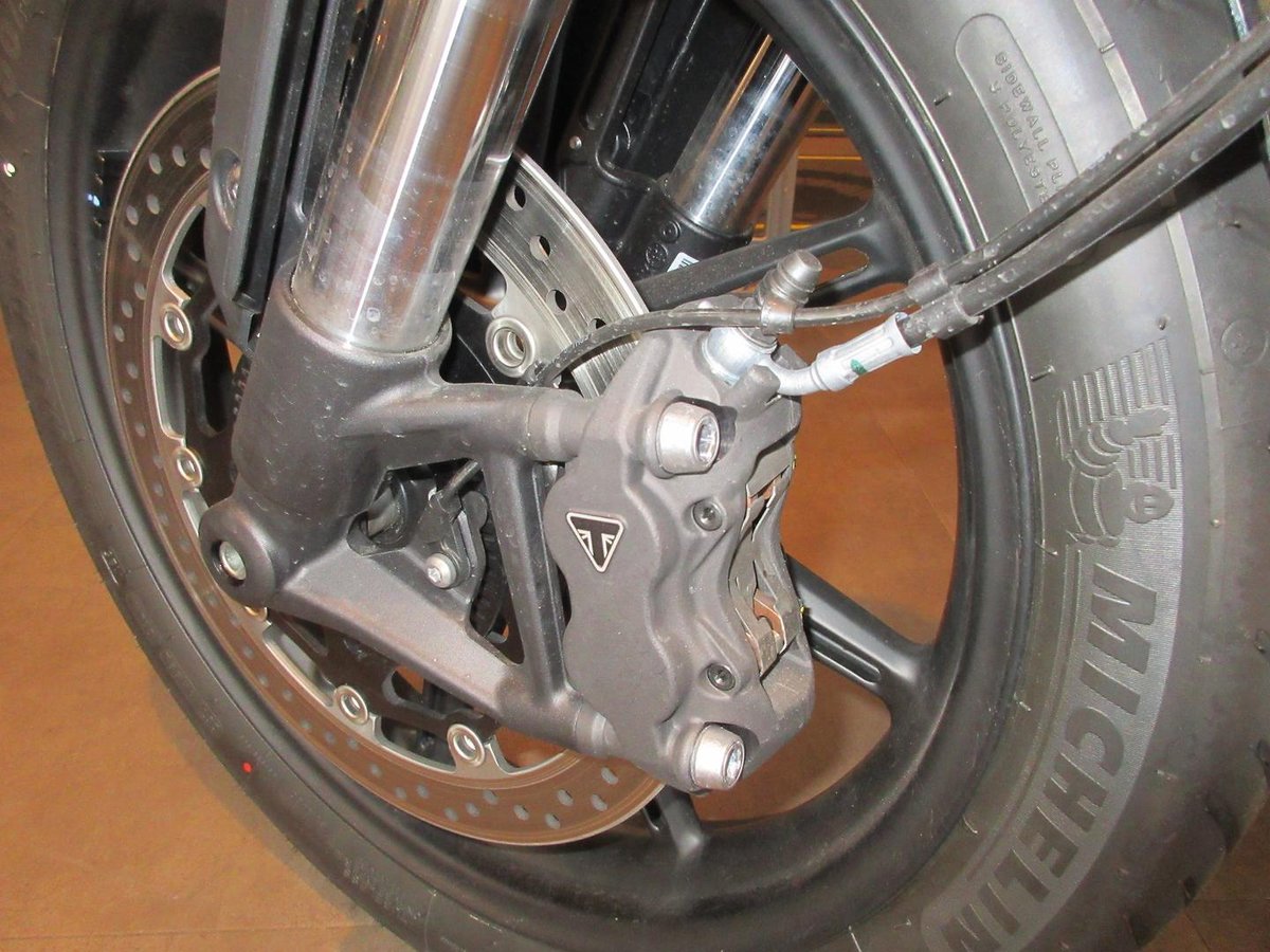 • Front Brake Description: Twin disc; Triumph branded radial calipers; Hydraulic
