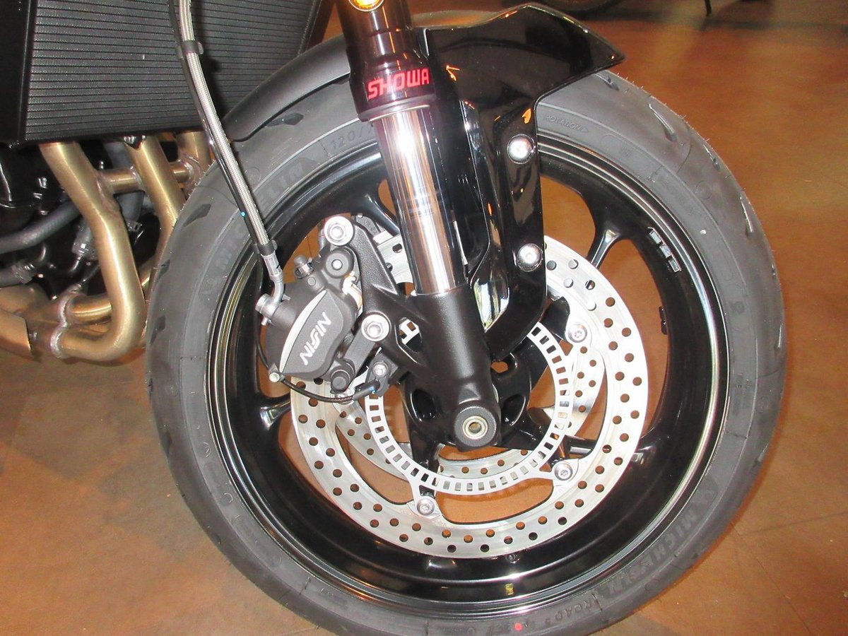 - Front Brake Description: Twin floating discs; Nissin Sliding calipers; Hydraulic; ABS