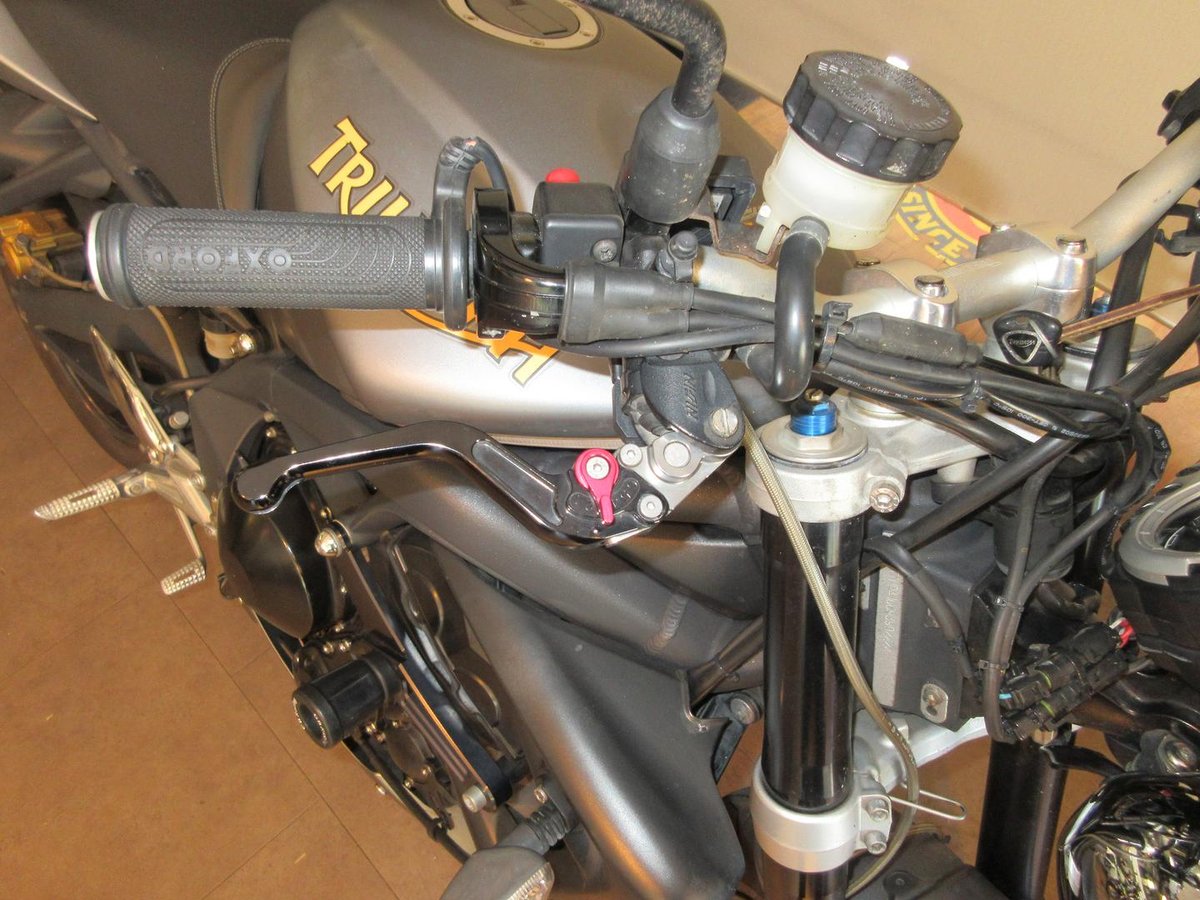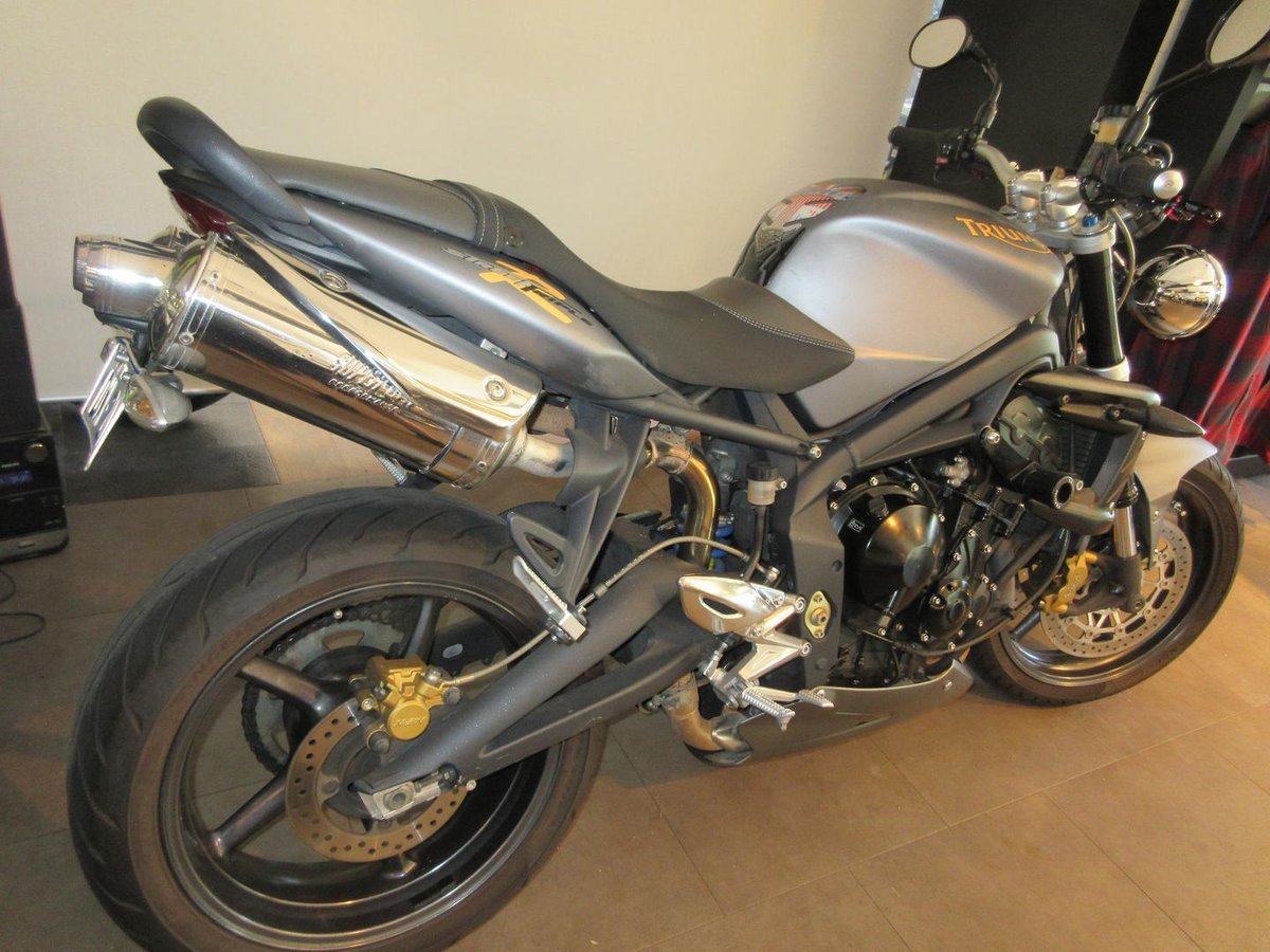 here is a very neat and tidy street triple r and comes with twin stainles louder mufflers, grab rail, tank pad, short triumph levers, oxford heated grips, oggy knobs and belly pan we have books and two keys has had its major service done inspection wont disapoint